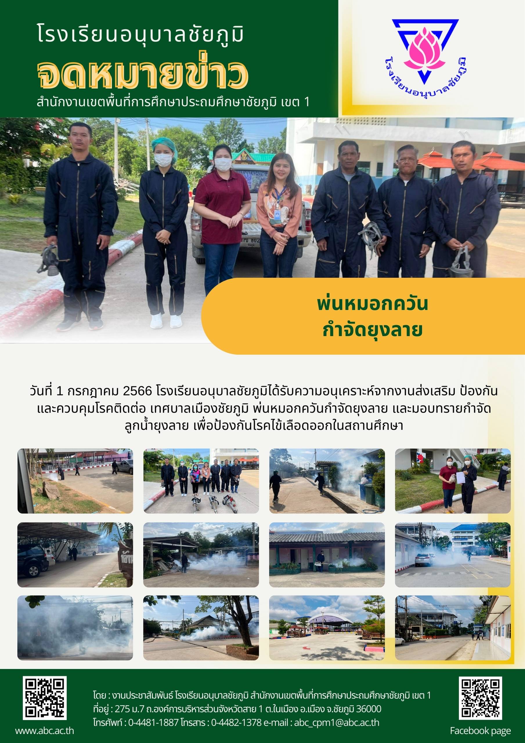 จดหมายข่าว จดหมายข่าว วันที่ 1 กรกฎาคม 2566 By Admin 13/07/2023 0 Comments Less than a minute 381 Views 3 ปี ago วันที่ 1 กรกฎาคม 2566 โรงเรียนอนุบาลชัยภูมิได้รับความอนุเคราะห์จากงานส่งเสริม ป้องกันและควบคุมโรคติดต่อ เทศบาลเมืองชัยภูมิ พ่นหมอกควันกำจัดยุงลาย และมอบทรายกำจัดลูกน้ำยุงลาย เพื่อป้องกันโรคไข้เลือดออกในสถานศึกษา FacebookfacebookXtwitterLINEline