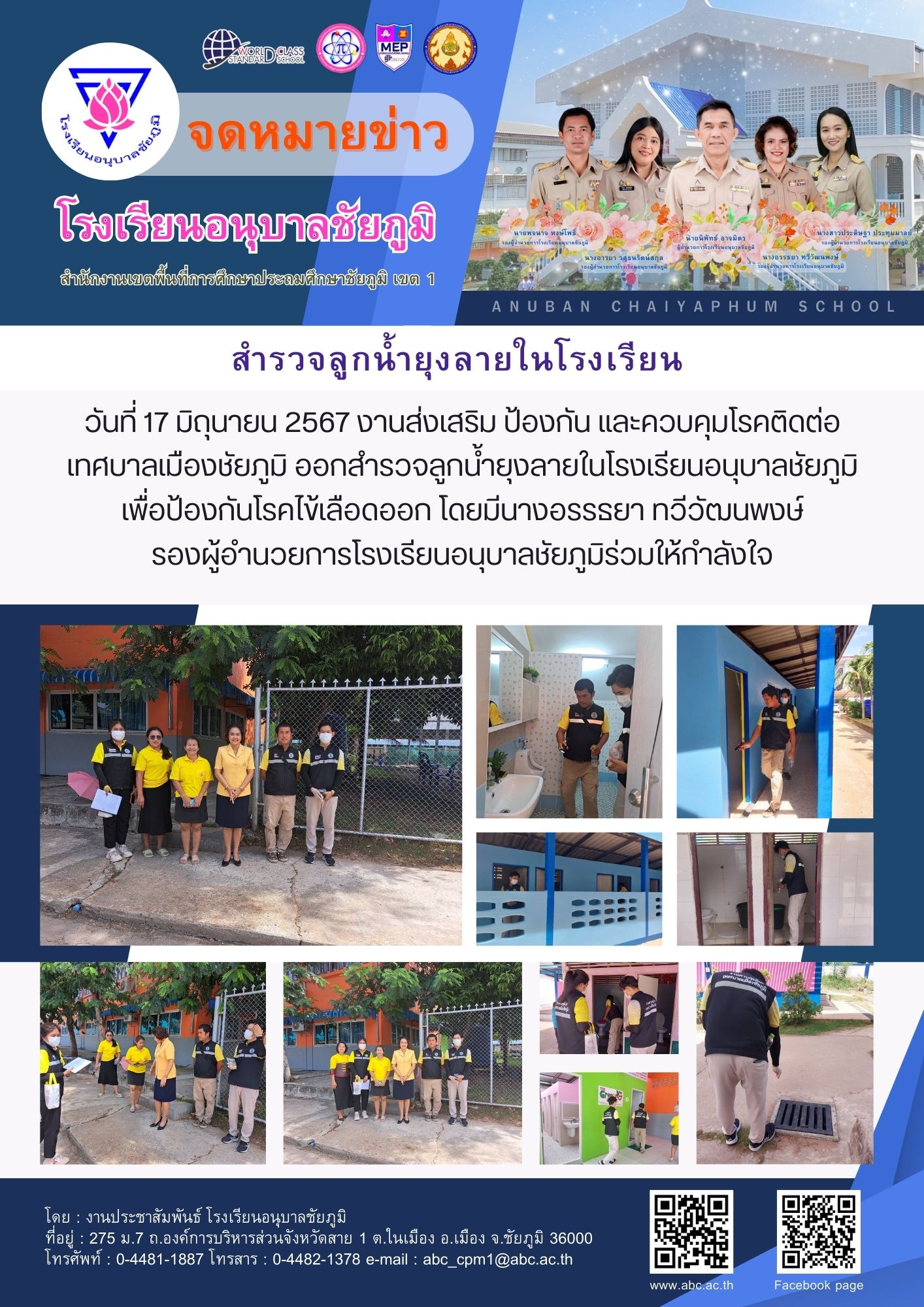 จดหมายข่าว จดหมายข่าว วันที่ 17 มิถุนายน 2567 ฉบับที่ 2 By Admin 29/07/2024 0 Comments Less than a minute 267 Views 2 ปี ago วันที่ 17 มิถุนายน 2567 งานส่งเสริม ป้องกัน และควบคุมโรคติดต่อ เทศบาลเมืองชัยภูมิ ออกสำรวจลูกน้ำยุงลายในโรงเรียนอนุบาลชัยภูมิ เพื่อป้องกันโรคไข้เลือดออก โดยมีนางอรรธยา ทวีวัฒนพงษ์ รองผู้อำนวยการโรงเรียนอนุบาลชัยภูมิร่วมให้กำลังใจ FacebookfacebookXtwitterLINEline